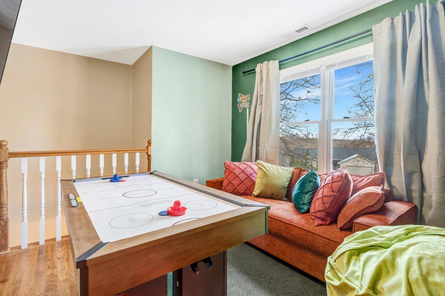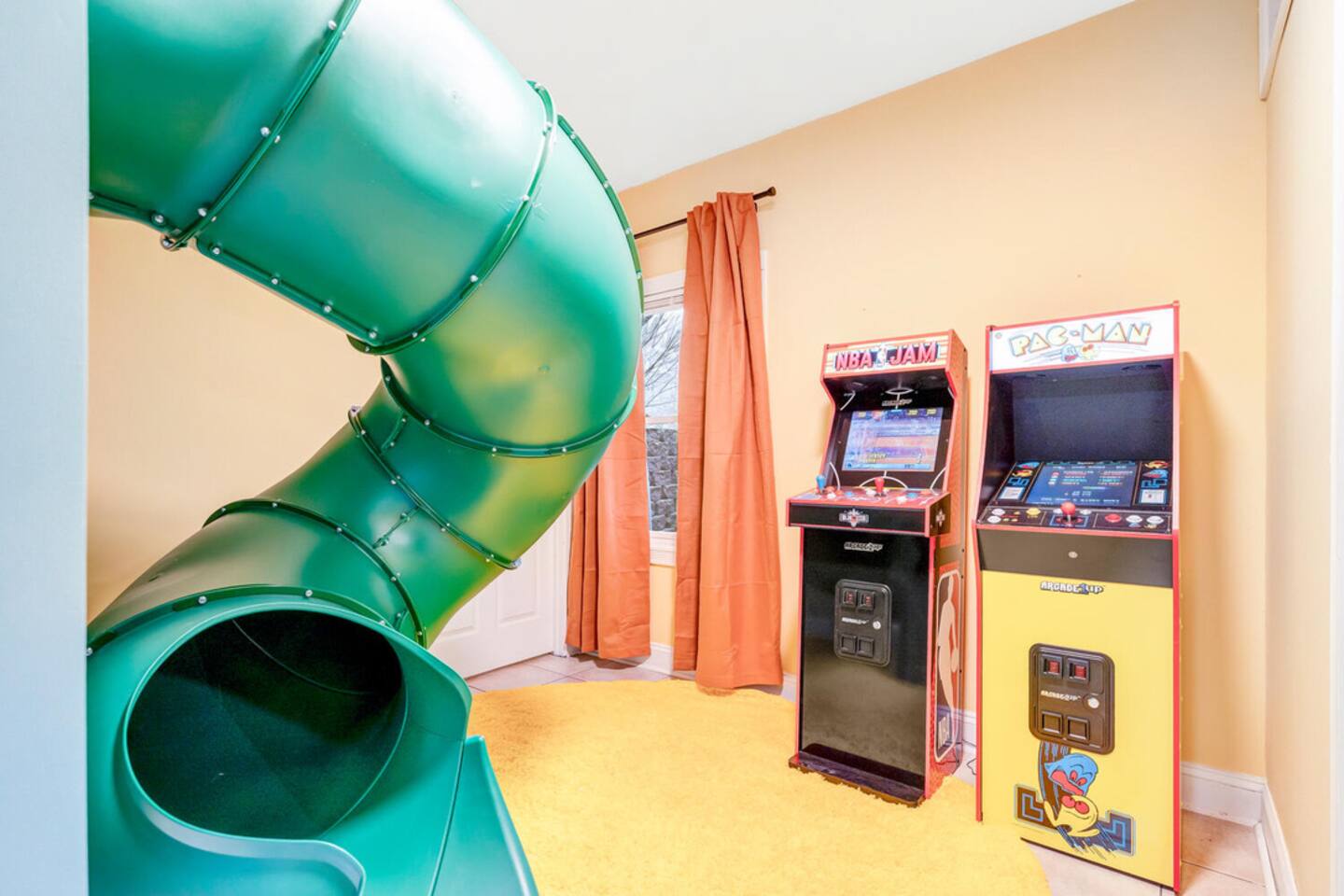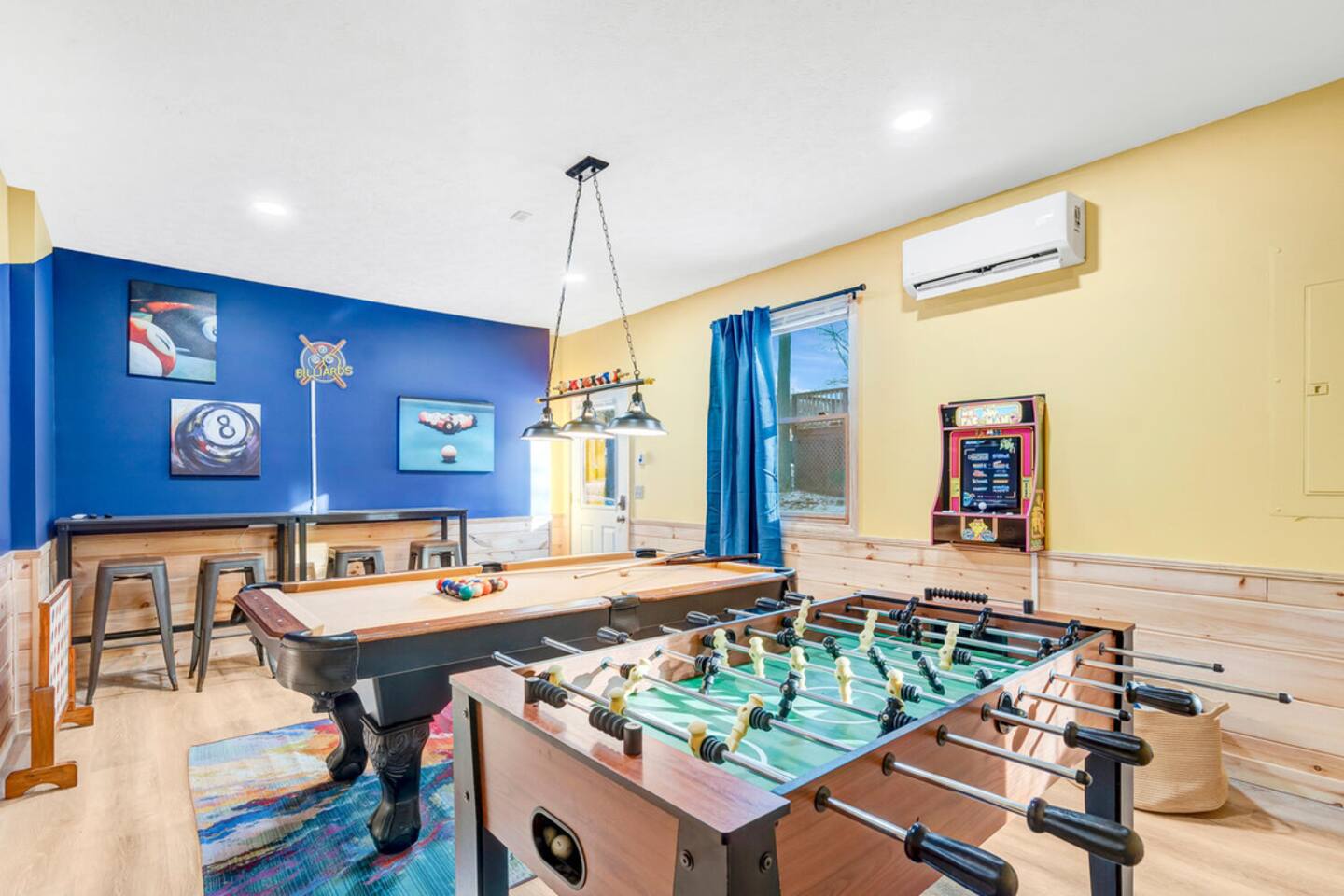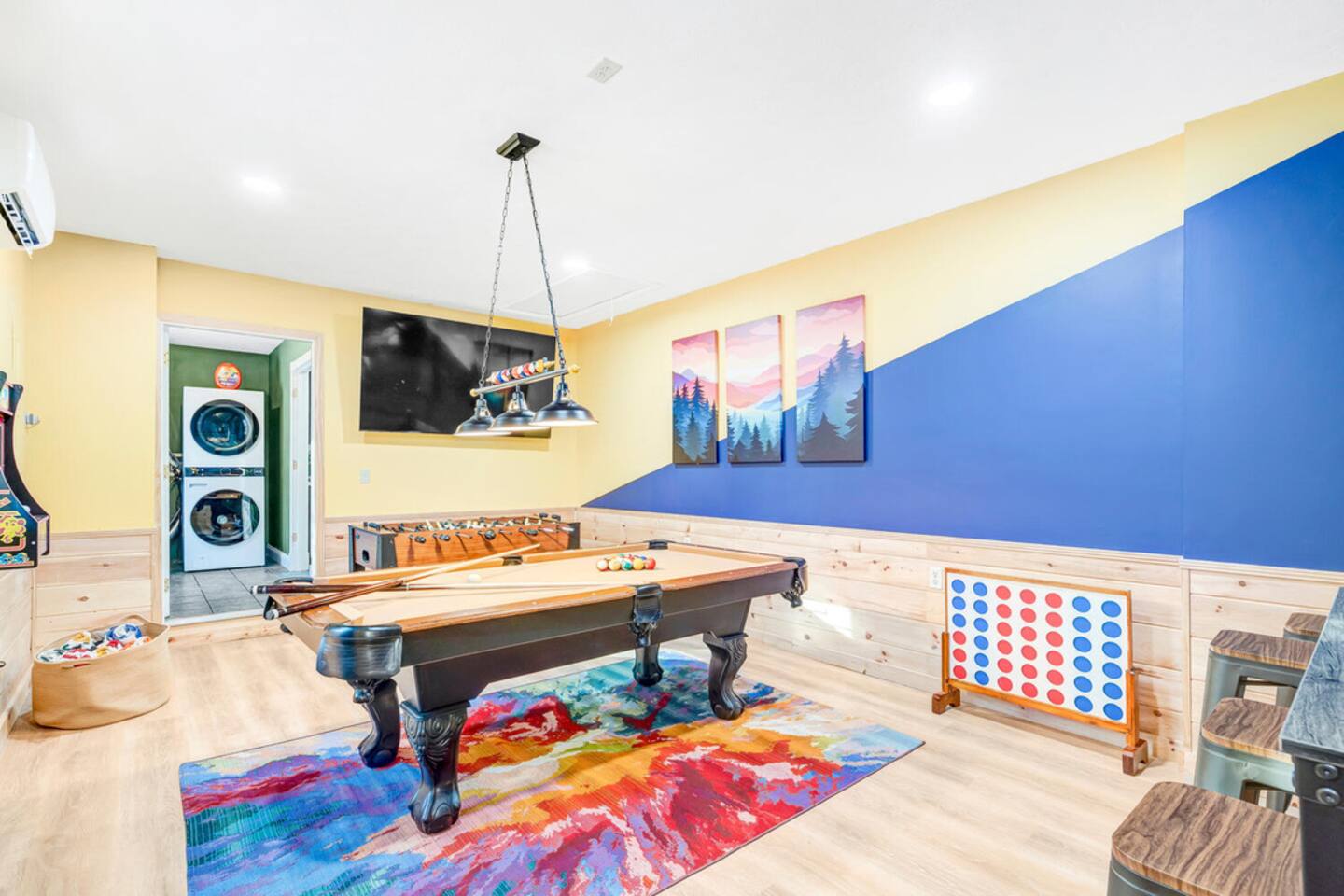 The house is located within the heart of Massanutten, with ski slopes, outdoor pool, indoor/outdoor Waterpark, spa, mini golf, go karts, and dining options all with about a 7 minute drive of the house. The Swift Run Gap entrance to Shenandoah National Park is 15 minutes away with some of the best hiking on the east coast. JMU and everything else in Harrisonburg is 20 minutes away, and there are several breweries, wineries, and restaurants within 15-20 minutes of the house. The home layout is as follows: Main level: - Living room with large sectional and large smart TV - Dining room - Kitchen is fully stocked with everything needed to prepare meals. Ground coffee and k-cups provided. - Game room with pool table, foosball, arcade, and large TV - BR1: Master king bedroom with ensuite bathroom with double vanity and shower/tub combo - Half bath - Outdoor deck with dining set and gas grill (propane provided) Upper level: - Loft area with couch and TV, plus air hockey table - BR2: Queen bedroom with desk and chair - BR3: Queen bedroom - BR4: Two queen bedroom - Full hall bathroom with shower/tub combo Lower level: - Outside is the hot tub, barrel sauna, and propane firepit area (propane provided) - Theater room with 8 reclining seats - Addition room area with couch, TV, and card table - BR5: Bunk room with 2 sets of custom-built full-over-full bunk beds, with spiral slide. Room also has 2 arcade machines - Full bathroom (access via the bunk room) - 2 sets of full size washers / dryers