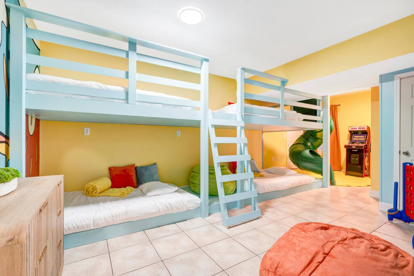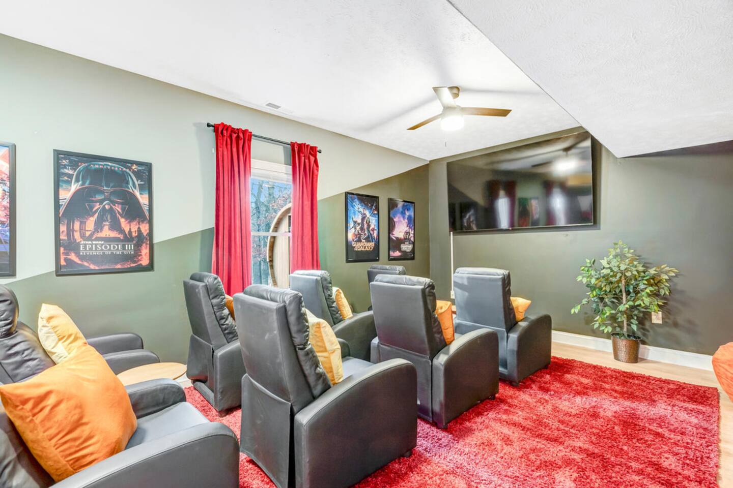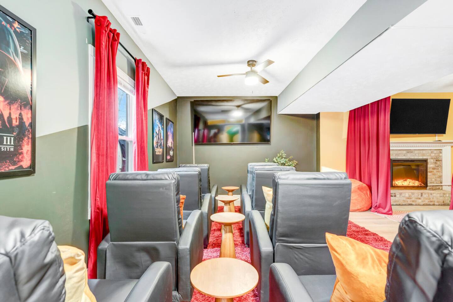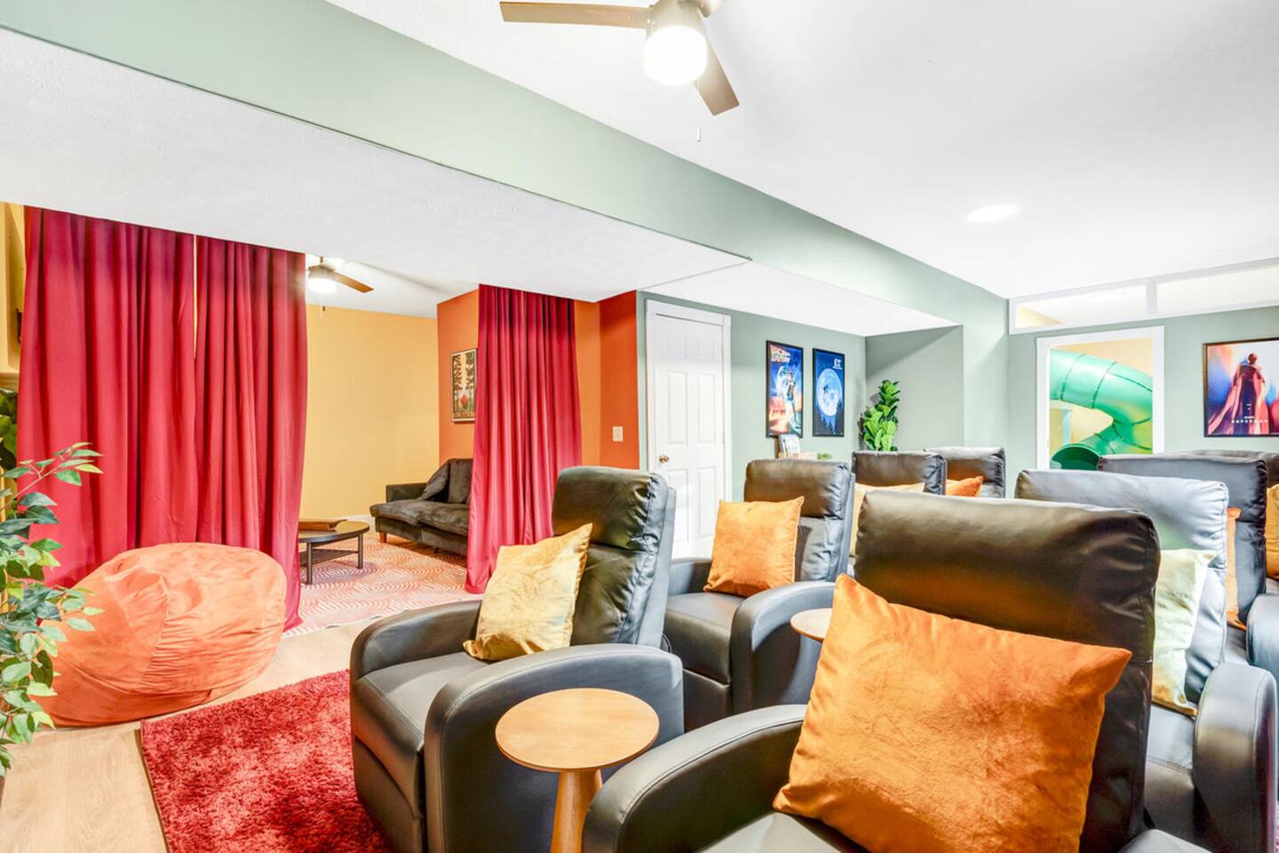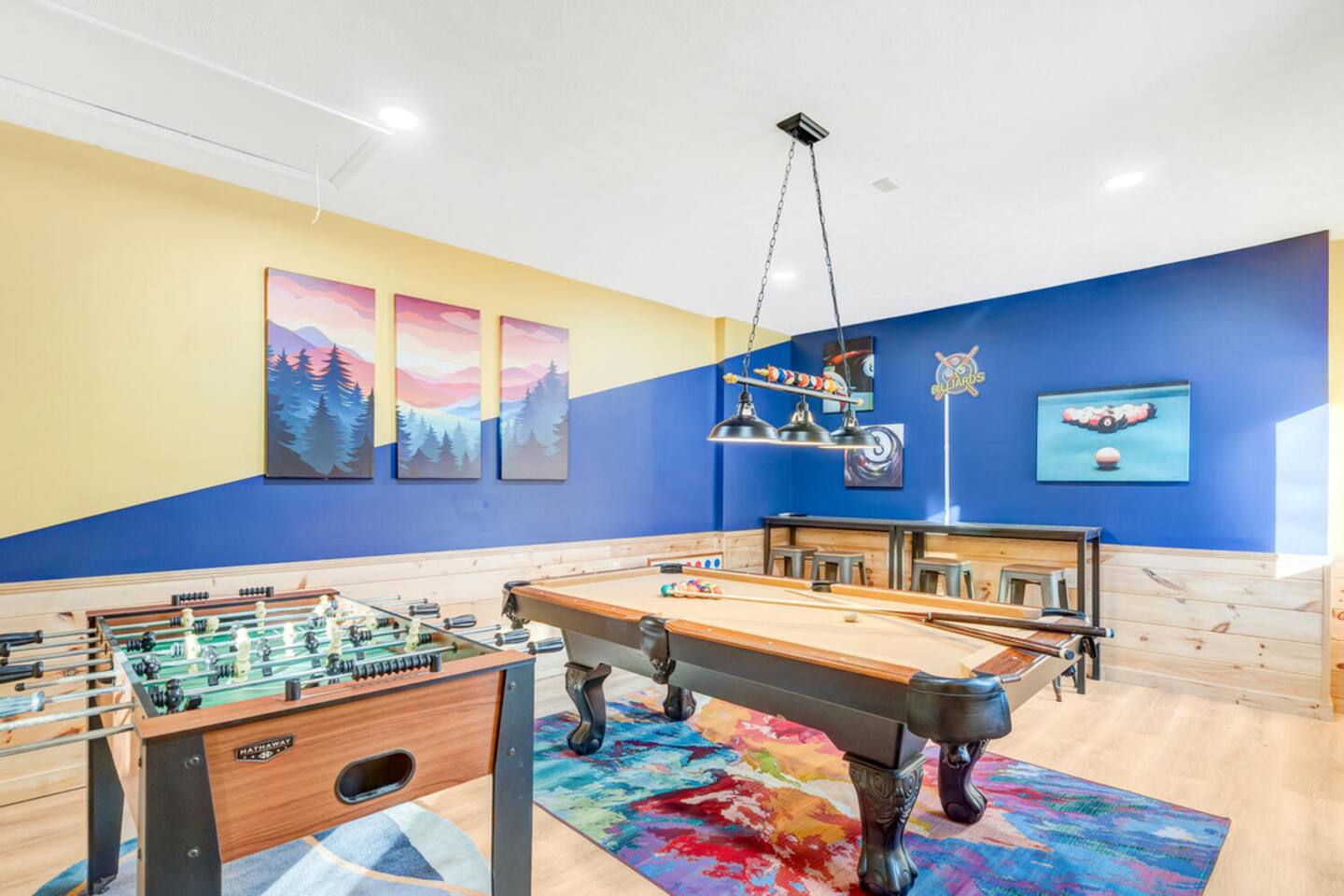 The house is located within the heart of Massanutten, with ski slopes, outdoor pool, indoor/outdoor Waterpark, spa, mini golf, go karts, and dining options all with about a 7 minute drive of the house. The Swift Run Gap entrance to Shenandoah National Park is 15 minutes away with some of the best hiking on the east coast. JMU and everything else in Harrisonburg is 20 minutes away, and there are several breweries, wineries, and restaurants within 15-20 minutes of the house. The home layout is as follows: Main level: - Living room with large sectional and large smart TV - Dining room - Kitchen is fully stocked with everything needed to prepare meals. Ground coffee and k-cups provided. - Game room with pool table, foosball, arcade, and large TV - BR1: Master king bedroom with ensuite bathroom with double vanity and shower/tub combo - Half bath - Outdoor deck with dining set and gas grill (propane provided) Upper level: - Loft area with couch and TV, plus air hockey table - BR2: Queen bedroom with desk and chair - BR3: Queen bedroom - BR4: Two queen bedroom - Full hall bathroom with shower/tub combo Lower level: - Outside is the hot tub, barrel sauna, and propane firepit area (propane provided) - Theater room with 8 reclining seats - Addition room area with couch, TV, and card table - BR5: Bunk room with 2 sets of custom-built full-over-full bunk beds, with spiral slide. Room also has 2 arcade machines - Full bathroom (access via the bunk room) - 2 sets of full size washers / dryers