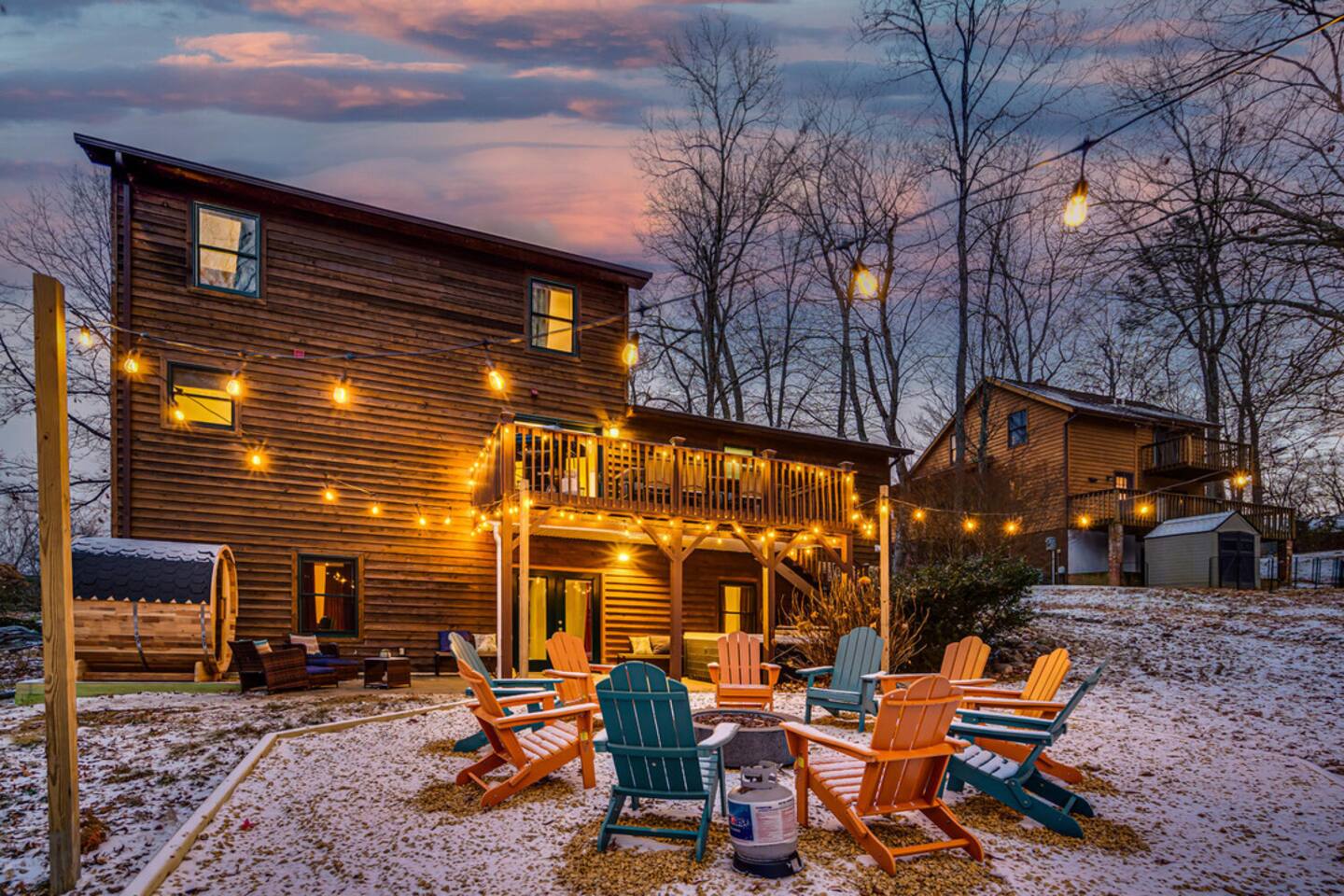 Nestled in Massanutten, Virginia, this charming five-bedroom, three-and-a-half-bath home blends comfort and fun. Enjoy a cozy living area, a fully equipped kitchen, a movie theater, and a game room with a pool table. Outside, relax by the fire pit, soak in the hot tub, or unwind in the barrel sauna. Massanutten has much to offer including skiing, a year-round indoor/outdoor waterpark, and much more. Plus, pet-friendly! Managed by Chris at New School Hosting- click my profile for more reviews.